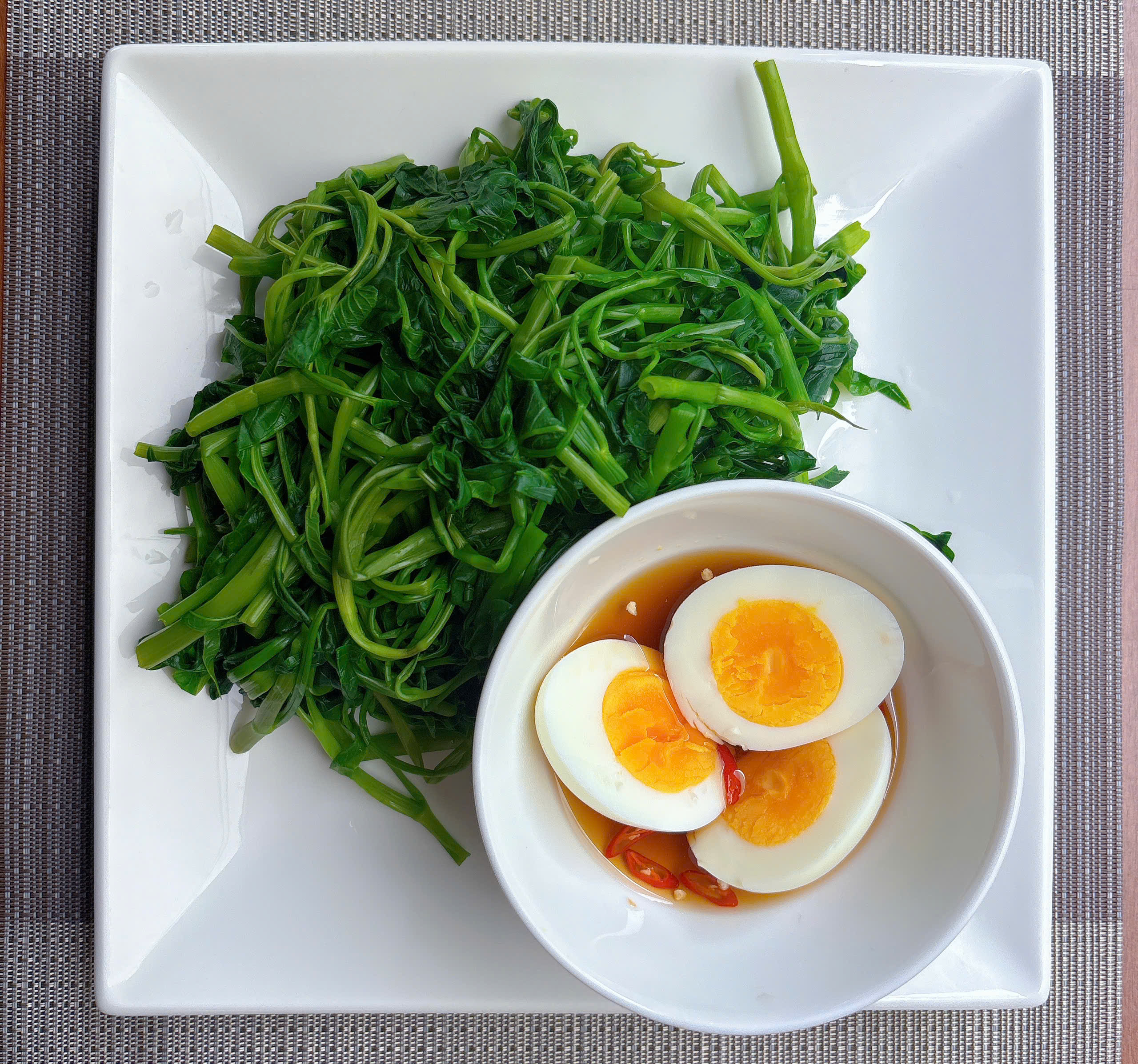 Rau Muống Luộc Chấm Trứng